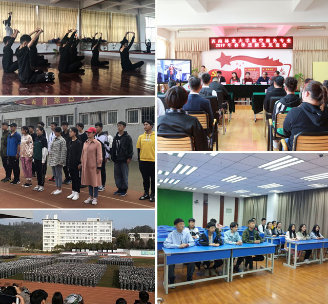 西南林业大学携手北京中航未来科技集团有限公司开展航空服务专业项目,主动适应国内外民航业的快速发展,以学员就业为导向,以技能培养为主导,致力于培养文化素质和语言能力更强、专业技能更高的现代民航服务人才。项目结合学校办学优势和企业先进的人才培养模式,强化培养体系的针对性和实效性,构建“职业技能培养+实训实习”相结合的“2+1”和“3+1”培养模式,即前两年或前三年在西南林业大学学习航空专业基础理论课程和基本技能,最后一年到中航未来航空实训基地进行实训。