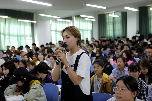 4月18日下午,学校党委书记郭书印在A5阶一北教室为2017级近300名学生讲授以“高等教育改革发展趋势”为主题的专题讲座,帮助同学们了解本科教育的战略地位、改革发展的趋势和具体举措。