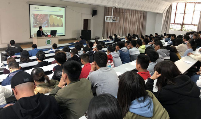 为贯彻落实习近平新时代中国特色社会主义思想和十九大报告精神,充分发挥工匠精神在社会主义核心价值观教育中的资源优势和引领示范作用,12月6日,工匠精神进校园主题报告在就业创业基地一楼报告厅举行,昆明贵研催化剂有限责任公司总经理冯丰先生以《求学、求职、求材》为题作报告。就业指导与服务中心、学院就业联络员及160余名学生聆听了报告,就业指导与服务中心副主任胡万波主持会议。