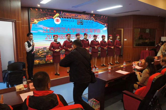2019年11月21日下午2点30分,江西师范大学继续教育学院航空服务专业在成教大楼603隆重举行19级学员制服授装仪式。本次活动主要是为了让学生感受到制服对于职业的必要性和专业性,当学生穿上航空制服的那刻,是神圣的,他们必须具备一个民航人的责任感和敬畏感,敬畏生命,敬畏责任,敬畏规章。